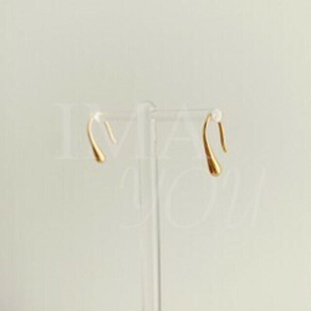 シンプルな装いに合わせやすい華奢なしずく形の真鍮製フックピアスです。普段の装いからビジネスのシーンまで。