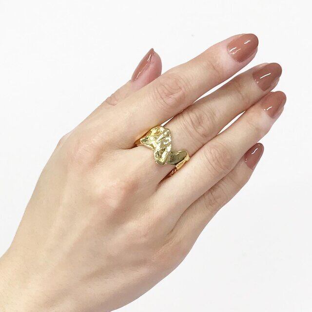 指先での存在感は抜群!ゴールドコーティング、ロジウムシルバーコーティングを施した真鍮製のリング。
