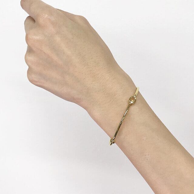 デイリーユースにぴったりのシンプルなブレスレット。腕元から落ちにくくつけられやすい開閉式デザインです。