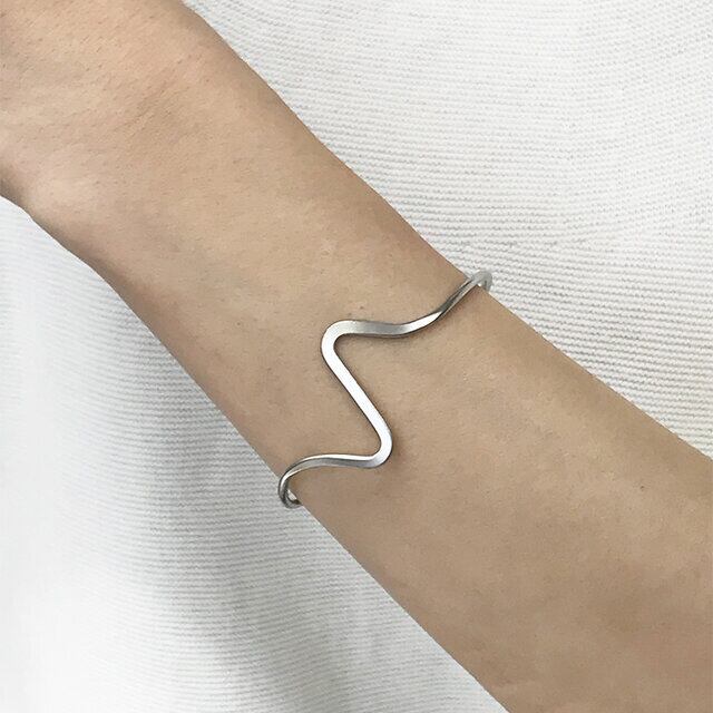 マットシルバーの曲線が美しいデザインの真鍮製フリーサイズバングルです。